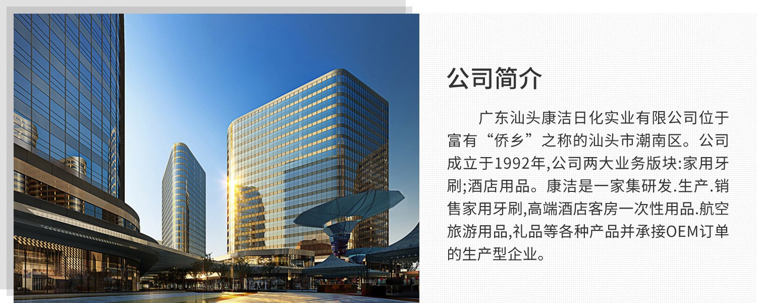 汕頭康潔日化實(shí)業(yè)有限公司是一家集研發(fā).生產(chǎn).銷售高端酒店客房一次性用品等各種產(chǎn)品并承接OEM訂單的生產(chǎn)型企業(yè)。